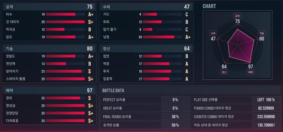 계급이나 스탯이 높은 상대를 많이 이긴다.